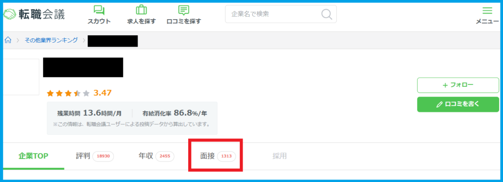 特に私が転職会議を特におすすめする理由は、検索項目に「面接」がある点です。